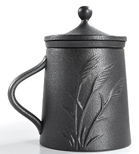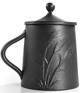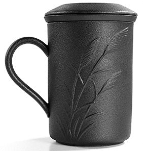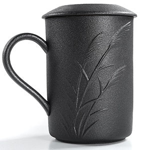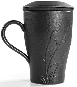 Black Ceramic Reed Tea Mug Tea Cup With Lid