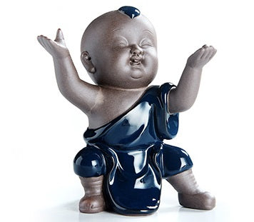 Blue Glazed Kongfu Monk Tea Pet Statue Hidden Dragon Style
