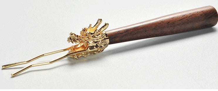 Tea folk for the hot lid with golden dragon's head and ebony handle. Also nice for home decoration.