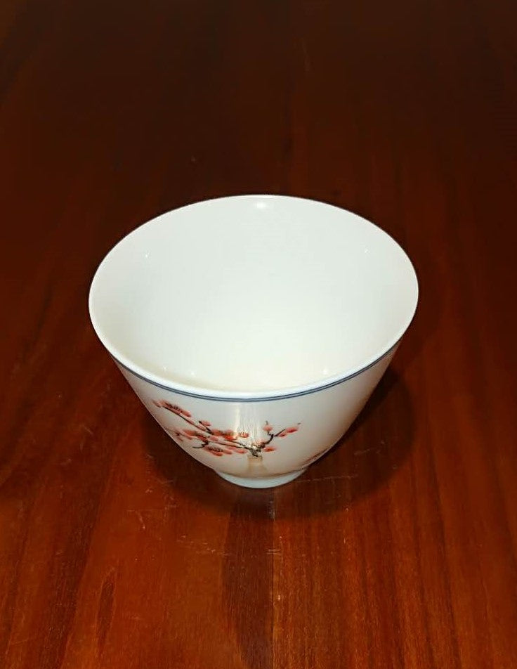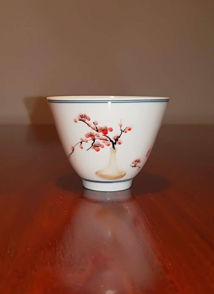 White Porcelain Hand Painted Glazed Host Tea Cup - Peach Blossom
