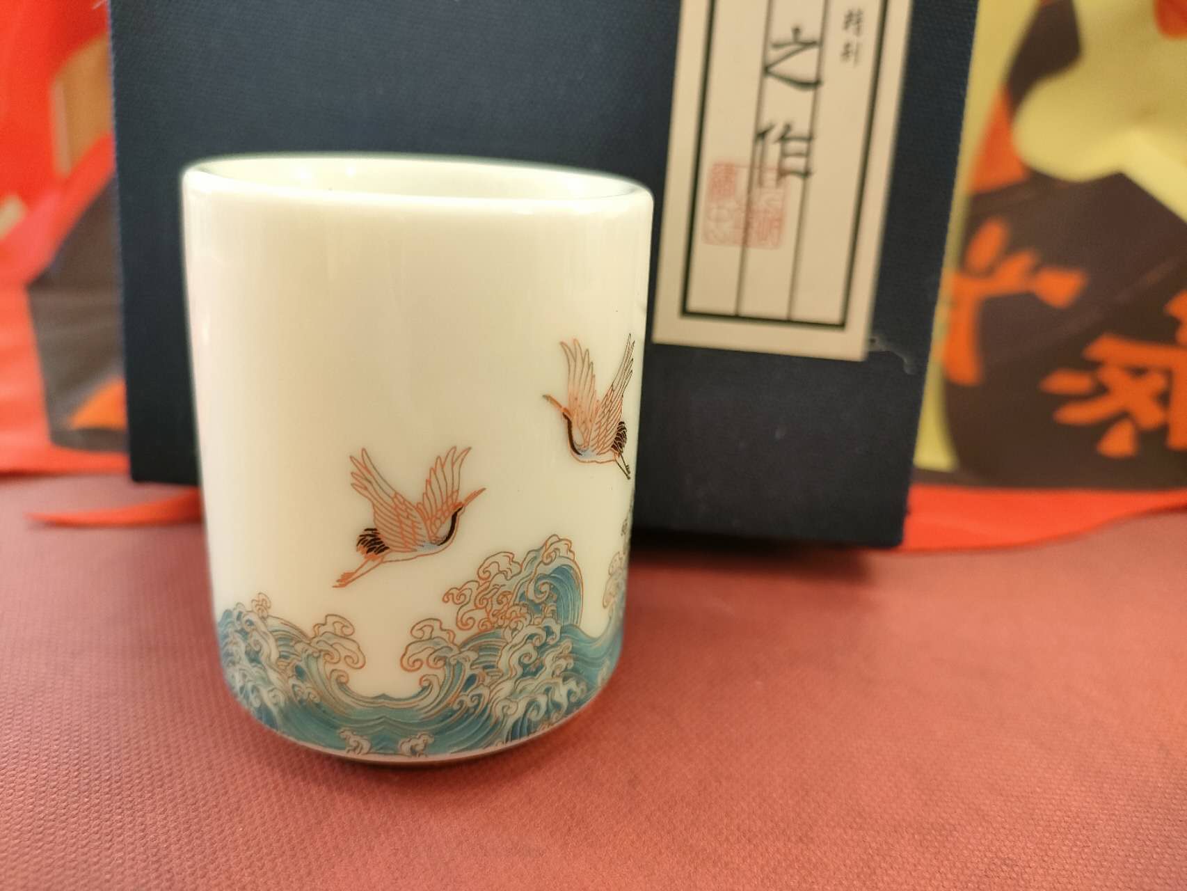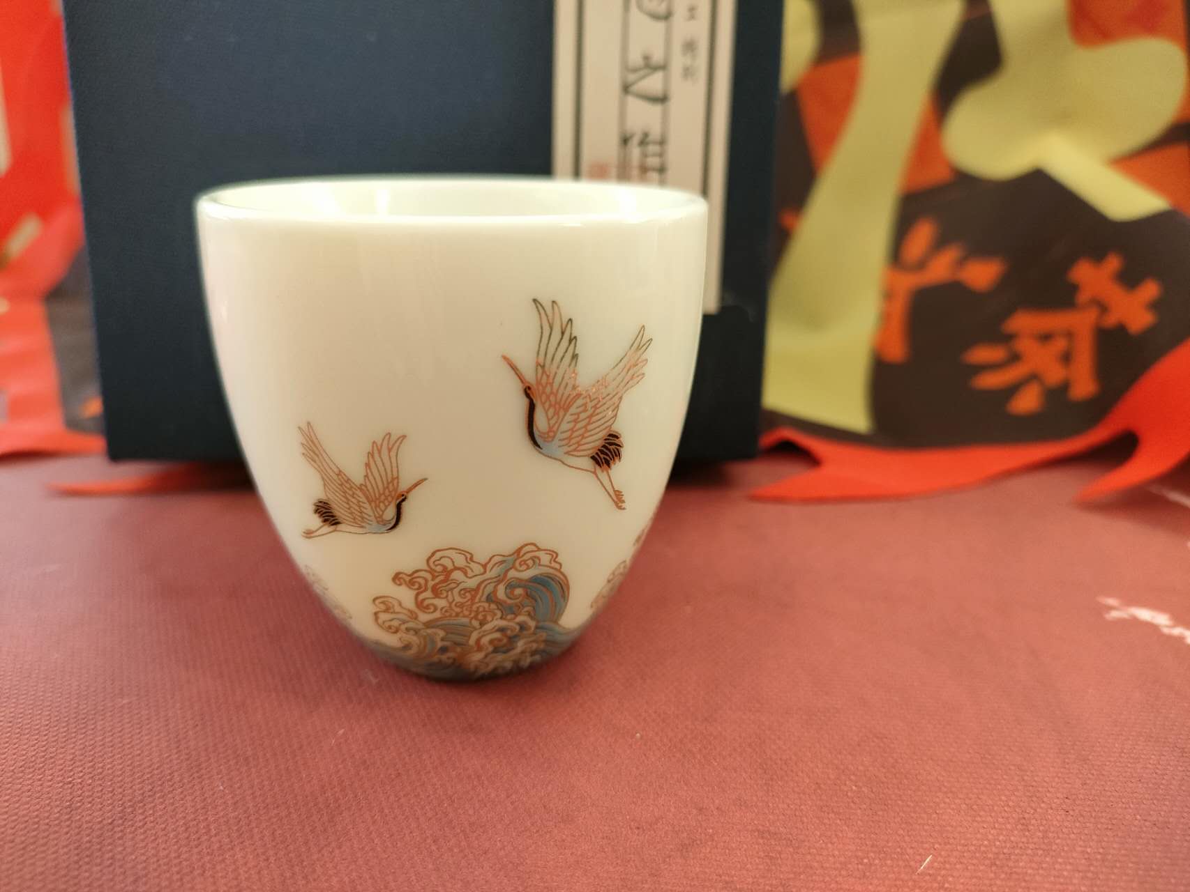 White Porcelain Tea Cup Ocean Crane Gift Boxed